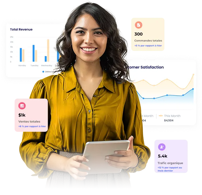 Nous analysons des KPIs adaptés à chaque objectif : trafic organique, taux de conversion, coût par lead, ROAS publicitaire, engagement social, etc. L’objectif de notre agence web Maroc est de piloter la performance par les données et d’optimiser vos résultats en continu, campagne après campagne.
